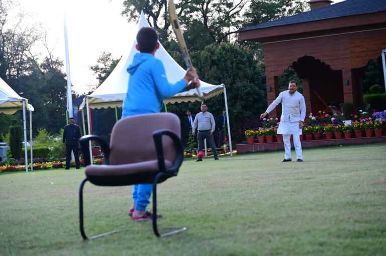 सीएम आवास पर व्यस्त दिनचर्या के बीच सीएम धामी ने क्रिकेट खेलते हुए फिट इंडिया का संदेश दिया