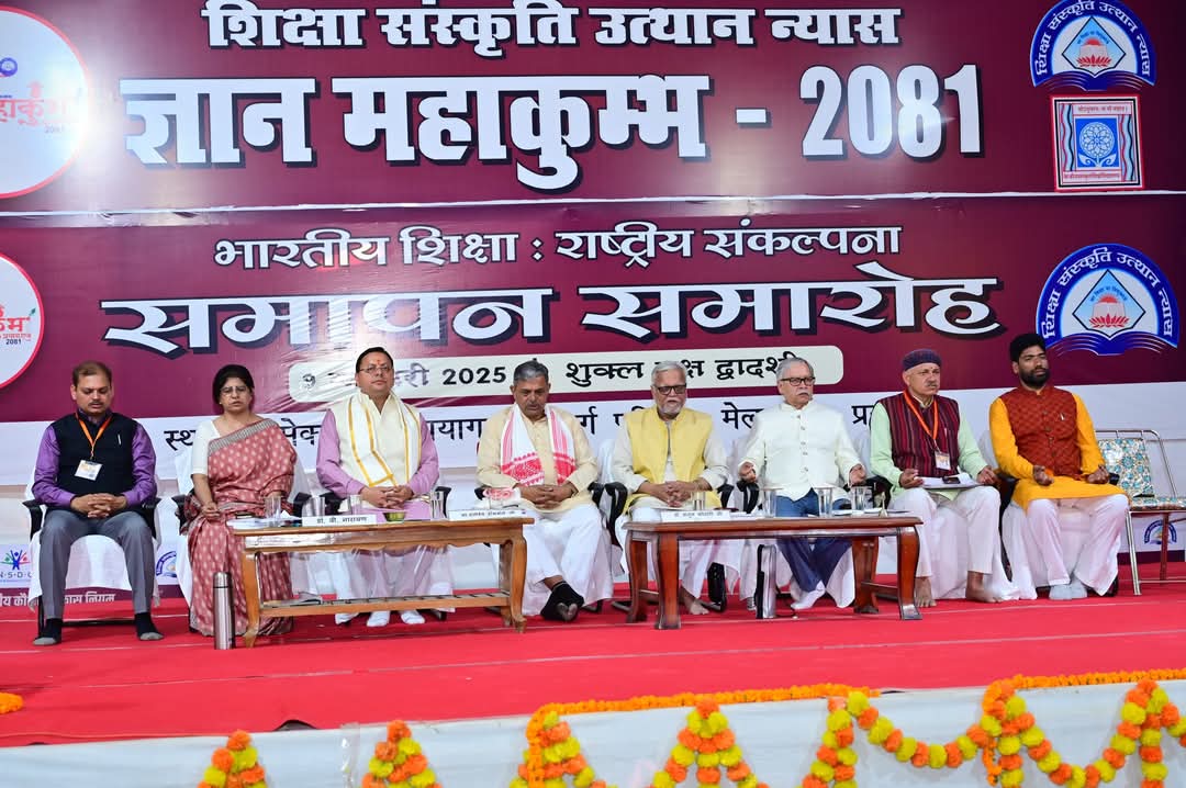 मुख्यमंत्री पुष्कर सिंह धामी ने आज महाकुंभ 2025 के अवसर पर प्रयागराज में आयोजित ‘ज्ञान महाकुंभ’ के समागम कार्यक्रम में प्रतिभाग किया। इस अवसर पर राष्ट्रीय स्वयंसेवक संघ के सरकार्यवाह दत्तात्रेय होसबोले भी उनके साथ कार्यक्रम में सम्मिलित हुए। इस अवसर पर सीएम धामी ने कहा प्रयागराज की पवित्र धरा पर हो रहे ज्ञान महाकुंभ में शैक्षिक प्रदर्शनी, संगोष्ठियां, छात्र, महिला और आचार्य सम्मेलन जैसे विभिन्न आयोजनों के माध्यम से युवाओं में भारतीय ज्ञान परंपरा की चेतन को जागृत किया जा रहा है। निश्चित तौर पर यह ज्ञान महाकुंभ शिक्षा का प्रचार प्रसार करने के लिए हमारे आने वाली पीढ़ी को नई दिशा प्रदान करने का कार्य करेगा।