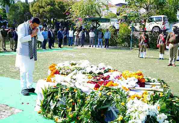 मुख्यमंत्री पुष्कर सिंह धामी ने सोमवार को किशनपुर, देहरादून स्थित पुलिस ऑफिसर्स कॉलोनी में पुलिस महानिरीक्षक केवल खुराना के पार्थिव शरीर पर पुष्पचक्र अर्पित कर श्रद्धांजलि दी। मुख्यमंत्री ने शोकाकुल परिवारजनों से मिलकर अपनी शोक संवेदनाएं व्यक्त की। मुख्यमंत्री ने दिवंगत आत्मा की शांति और शोकाकुल परिजनों को धैर्य प्रदान करने की ईश्वर से कामना की है।